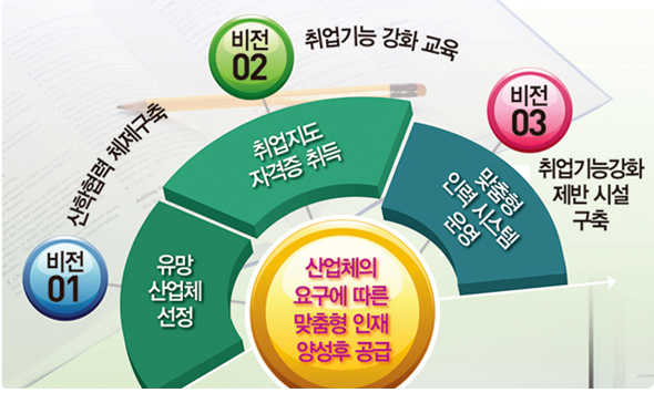 취업기능 향상을 위해 산업체의 요구에 맞는 교육과정을 개발하여 맞춤형 인재양성으로 학생들이 취업할 수 있는 분위기 조성